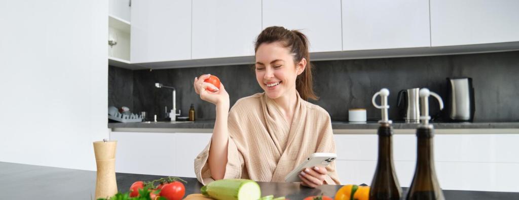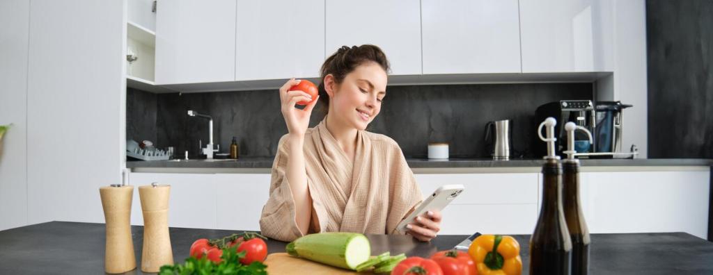 Beginne mit einem Gericht pro Woche, steigere auf zwei, dann drei Komponenten. Tracke Erfolge im Kalender und feiere Konstanz. Abonniere unseren Newsletter für kleine, wöchentliche Ziele und freundliche Erinnerungen.